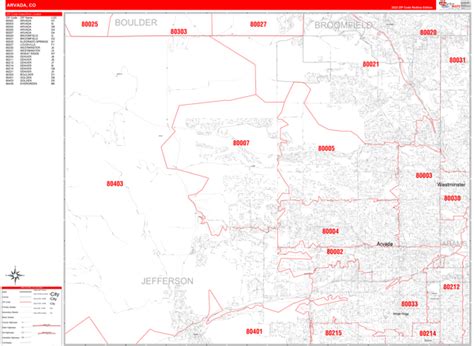 Arvada Colorado Zip Code Wall Map (Red Line Style) by MarketMAPS