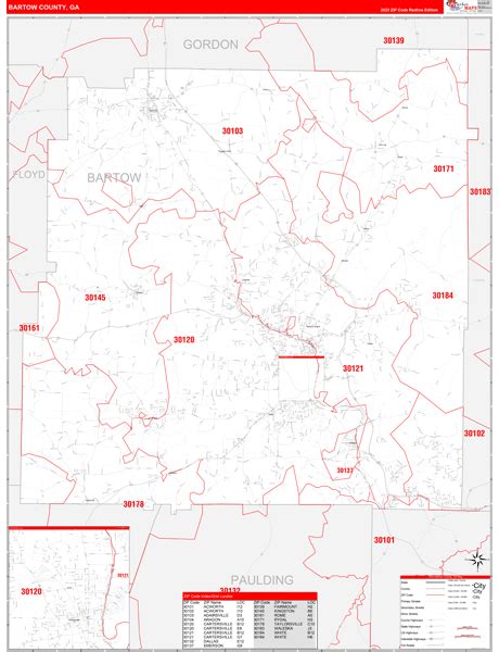 Bartow County, GA Zip Code Wall Map Basic Style by MarketMAPS MapSales