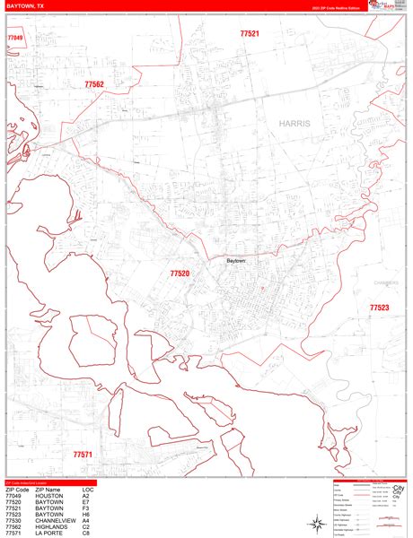 Baytown Texas Zip Code Wall Map (Red Line Style) by MarketMAPS