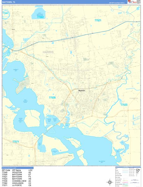Baytown Texas Zip Code Wall Map (Red Line Style) by MarketMAPS