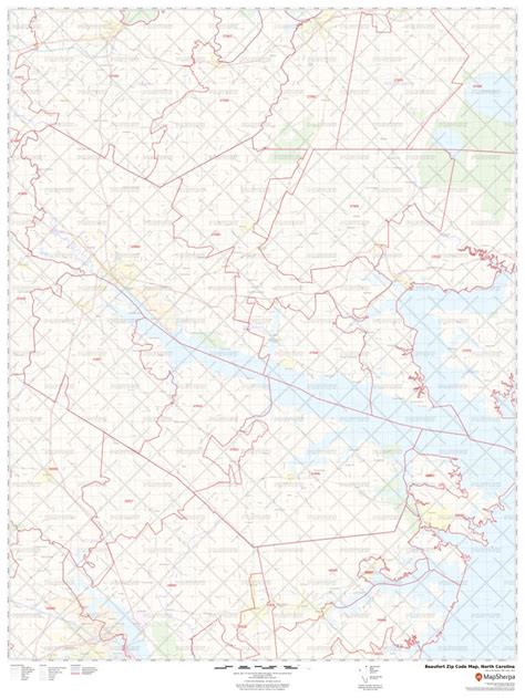 Beaufort County, NC Zip Code Wall Map Red Line Style by MarketMAPS
