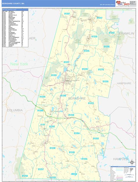 Berkshire County, MA Zip Code Wall Map Basic Style by MarketMAPS MapSales