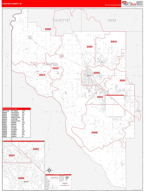 Canyon County, ID Zip Code Wall Map Basic Style by MarketMAPS MapSales