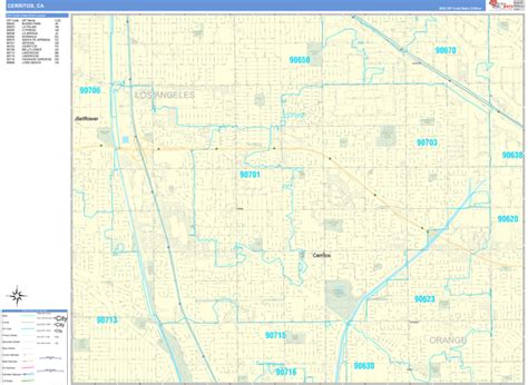 Cerritos California Zip Code Wall Map (Red Line Style) by MarketMAPS
