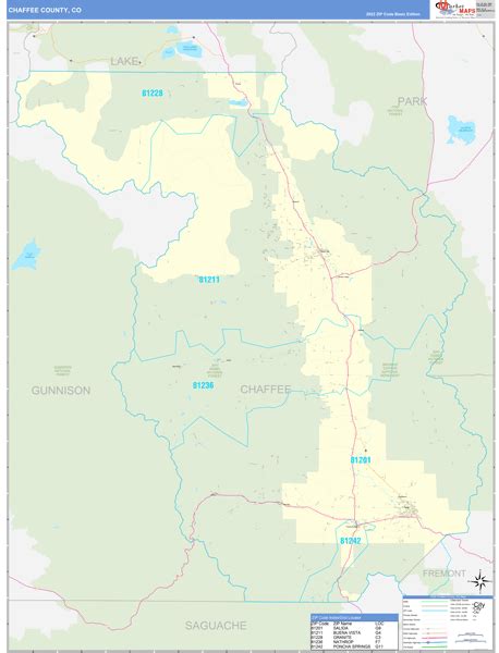 Chaffee County, CO Zip Code Wall Map Red Line Style by MarketMAPS