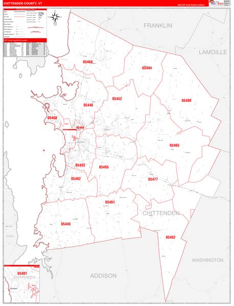 Chittenden County, VT Zip Code Wall Map Basic Style by MarketMAPS