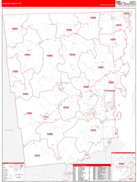 Clinton County, NY Zip Code Wall Map Basic Style by MarketMAPS