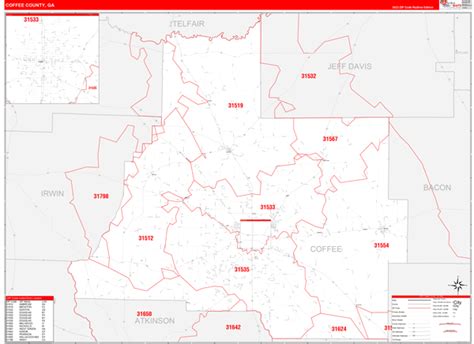Coffee County, GA Zip Code Wall Map Basic Style by MarketMAPS