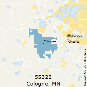 Web 55322 is a united states zip code located in cologne minnesota. Portions of 55322 are also in waconia and carver and benton. It covers a total of 57.17 square miles of land area. Web zip code 55322 is located in the city of cologne, minnesota and covers 57.173 square miles of land area. Web cologne, mn is a city located in carver county, minnesota and has a land area of 57.17 square miles (148.07 km2).