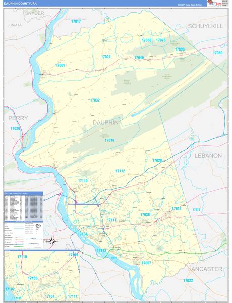 Dauphin County, PA Zip Code Wall Map Red Line Style by MarketMAPS