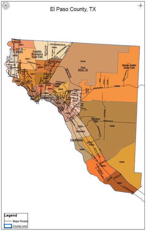 El Paso Texas Zip Code Wall Map (Red Line Style) by MarketMAPS MapSales