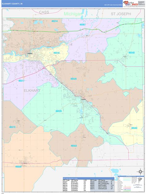 Elkhart County Zip Code Map, Indiana