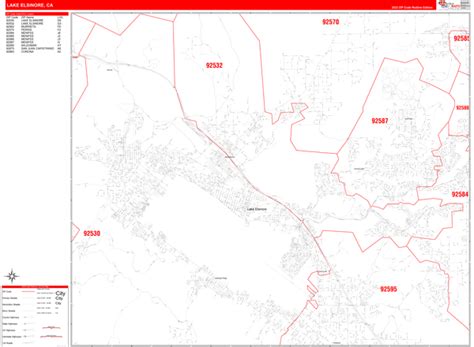 Lake Elsinore California Zip Code Wall Map (Red Line Style) by