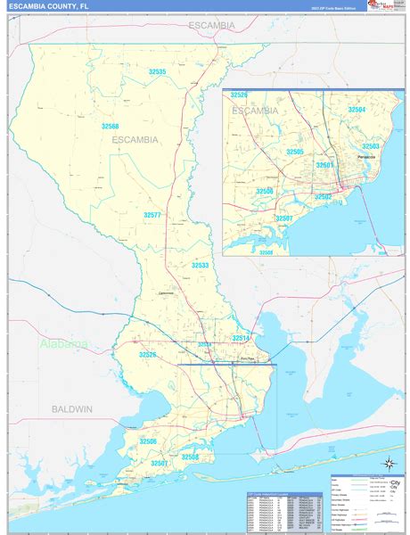 Escambia County, FL Zip Code Wall Map Red Line Style by MarketMAPS