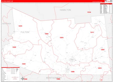 Fulton County, NY Zip Code Wall Map Basic Style by MarketMAPS MapSales