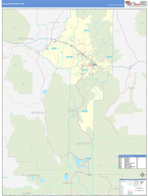 Gallatin County, MT Zip Code Wall Map Red Line Style by MarketMAPS