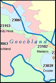 Goochland County Zip Codes. There are 10 zip codes in goochland county that extend into. The most populated is 23238, located in richmond.