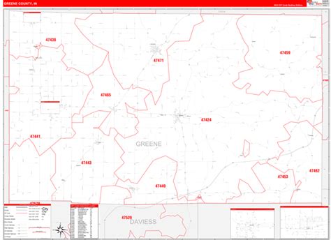Greene County, MO Zip Code Wall Map Red Line Style by MarketMAPS MapSales