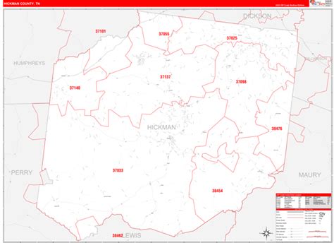 Hickman County, TN Zip Code Wall Map Red Line Style by MarketMAPS