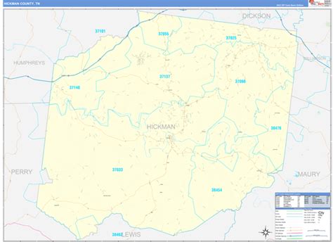 Hickman County, TN Zip Code Wall Map Red Line Style by MarketMAPS