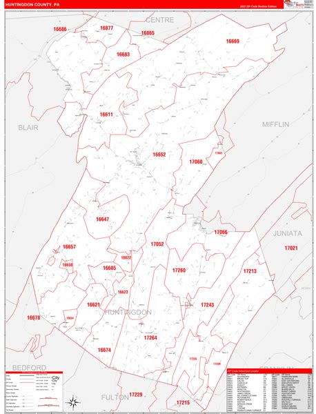 Huntingdon County, PA Zip Code Wall Map Basic Style by MarketMAPS
