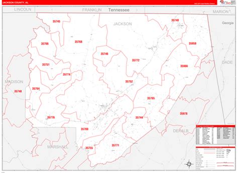 Jackson County, FL Zip Code Wall Map Red Line Style by MarketMAPS