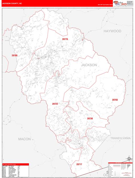 Jackson County, WV Zip Code Wall Map Red Line Style by MarketMAPS