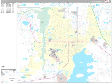 Kissimmee Florida Zip Code Wall Map (Red Line Style) by MarketMAPS