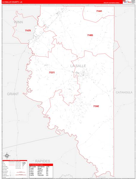 La Salle County, TX Zip Code Wall Map Red Line Style by MarketMAPS