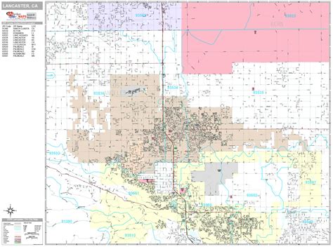 Lancaster California Zip Code Wall Map (Red Line Style) by MarketMAPS