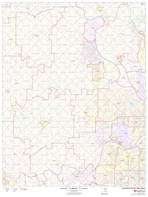 Leavenworth County, KS Zip Code Wall Map Red Line Style by MarketMAPS
