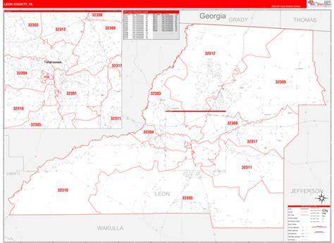 Leon County, FL Zip Code Wall Map Red Line Style by MarketMAPS