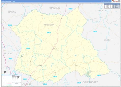 Madison County, GA Zip Code Wall Map Basic Style by MarketMAPS MapSales