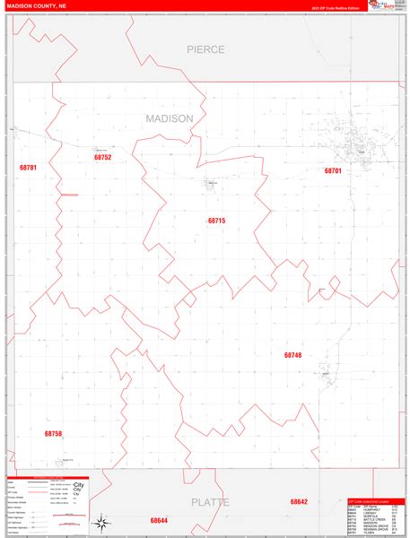 Madison County, NE Zip Code Wall Map Basic Style by MarketMAPS