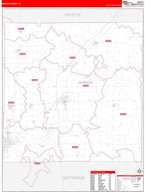 Marion County, TN Zip Code Wall Map Red Line Style by MarketMAPS