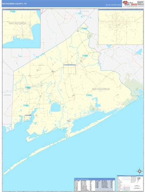 Matagorda County, TX Zip Code Wall Map Basic Style by MarketMAPS MapSales
