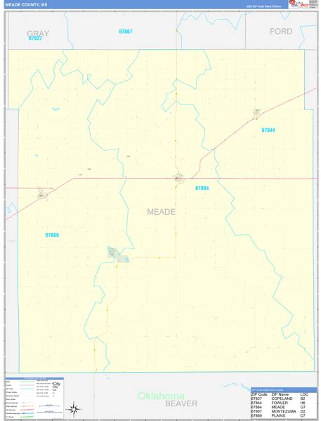 Meade County, KS Zip Code Wall Map Basic Style by MarketMAPS