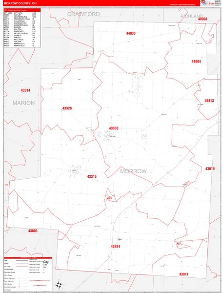 Morrow County, OH Zip Code Wall Map Basic Style by MarketMAPS