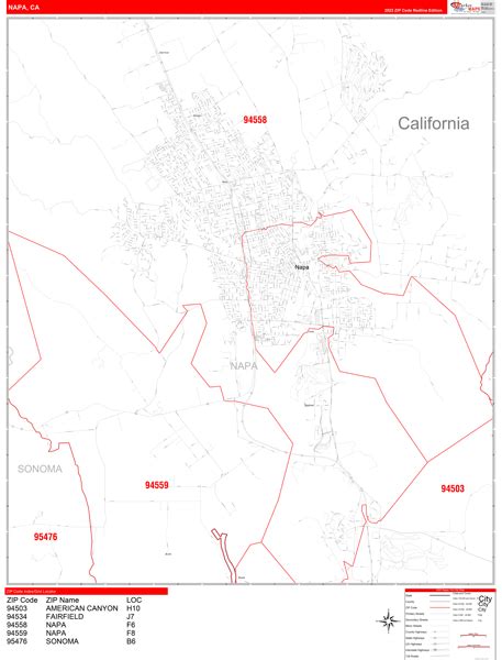 Napa County Zip Codes Napa and St Helena Zip Code Boundary Map