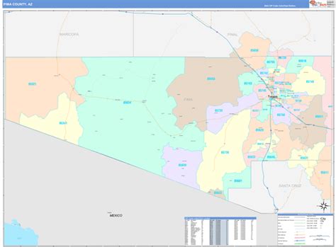 Pima County, AZ Zip Code Wall Map Basic Style by MarketMAPS MapSales