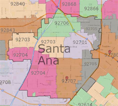 Santa Ana Zip Code Map, California