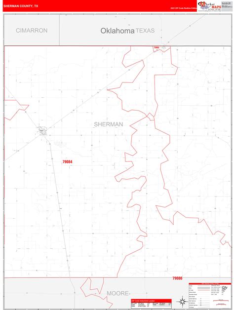 Sherman County, TX Zip Code Wall Map Red Line Style by MarketMAPS