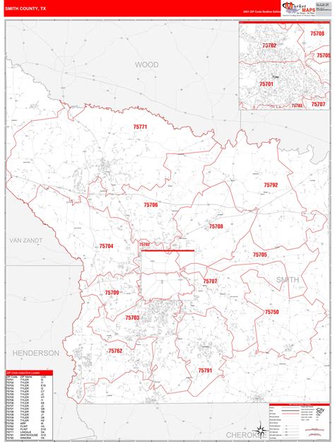 Smith County, TX Zip Code Wall Map Red Line Style by MarketMAPS MapSales