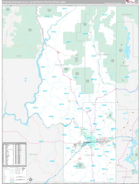 Spokane County, WA Zip Code Wall Map Basic Style by MarketMAPS MapSales