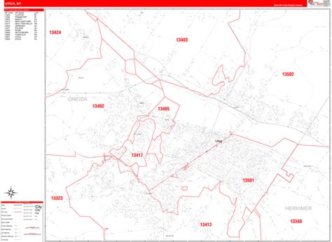 Utica New York Zip Code Wall Map (Red Line Style) by MarketMAPS MapSales