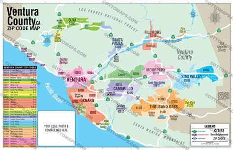 Ventura County, CA Zip Code Wall Map Basic Style by MarketMAPS MapSales