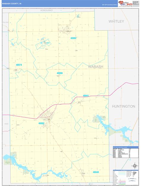 Wabash County, IL Zip Code Wall Map Basic Style by MarketMAPS