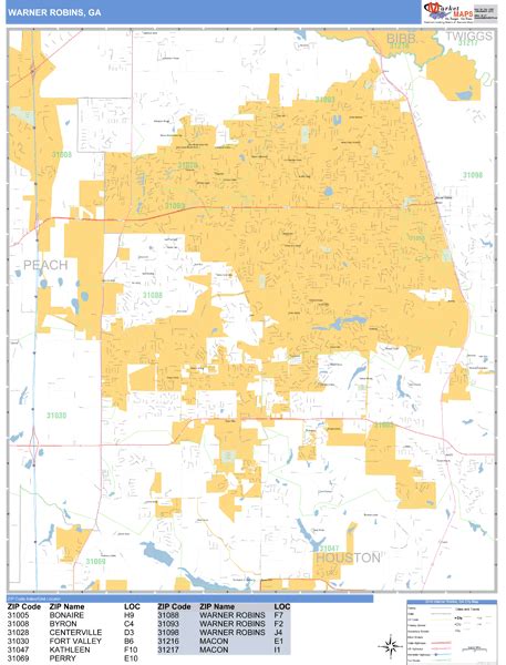 Warner Robins Zip Code Wall Map (Red Line Style) by MarketMAPS