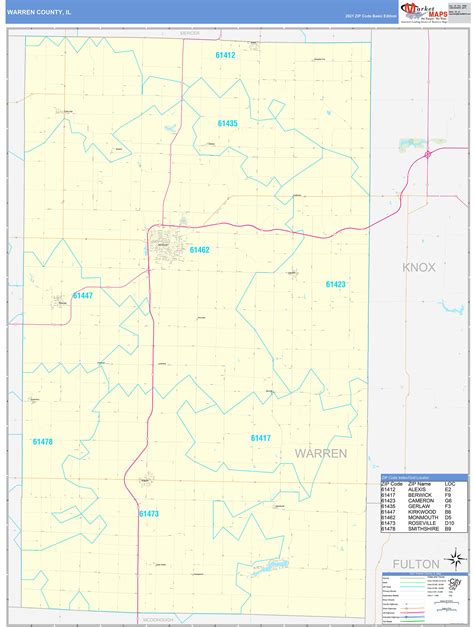 Warren County, IL Zip Code Wall Map Basic Style by MarketMAPS