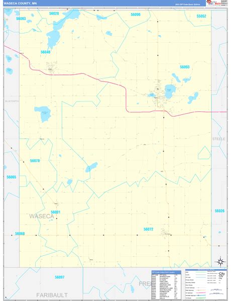 Waseca County, MN Zip Code Wall Map Basic Style by MarketMAPS MapSales